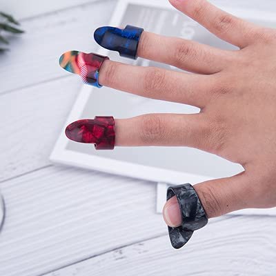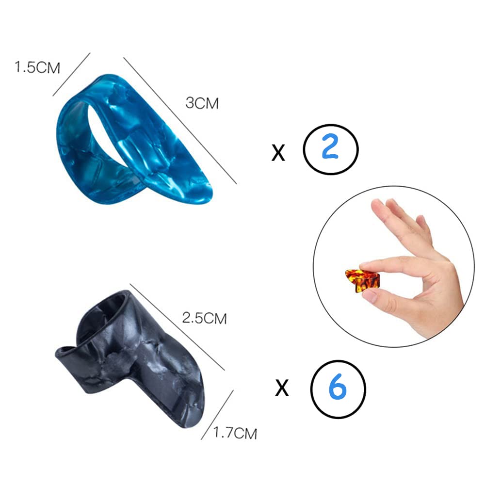 • 🎵【What you get】: 8 thumb picks, colors as the picture shown, can offer you various styles to match well your different clothes when you are performing; Celluloid is a natural material, the texture and color of each batch are different, please understand .