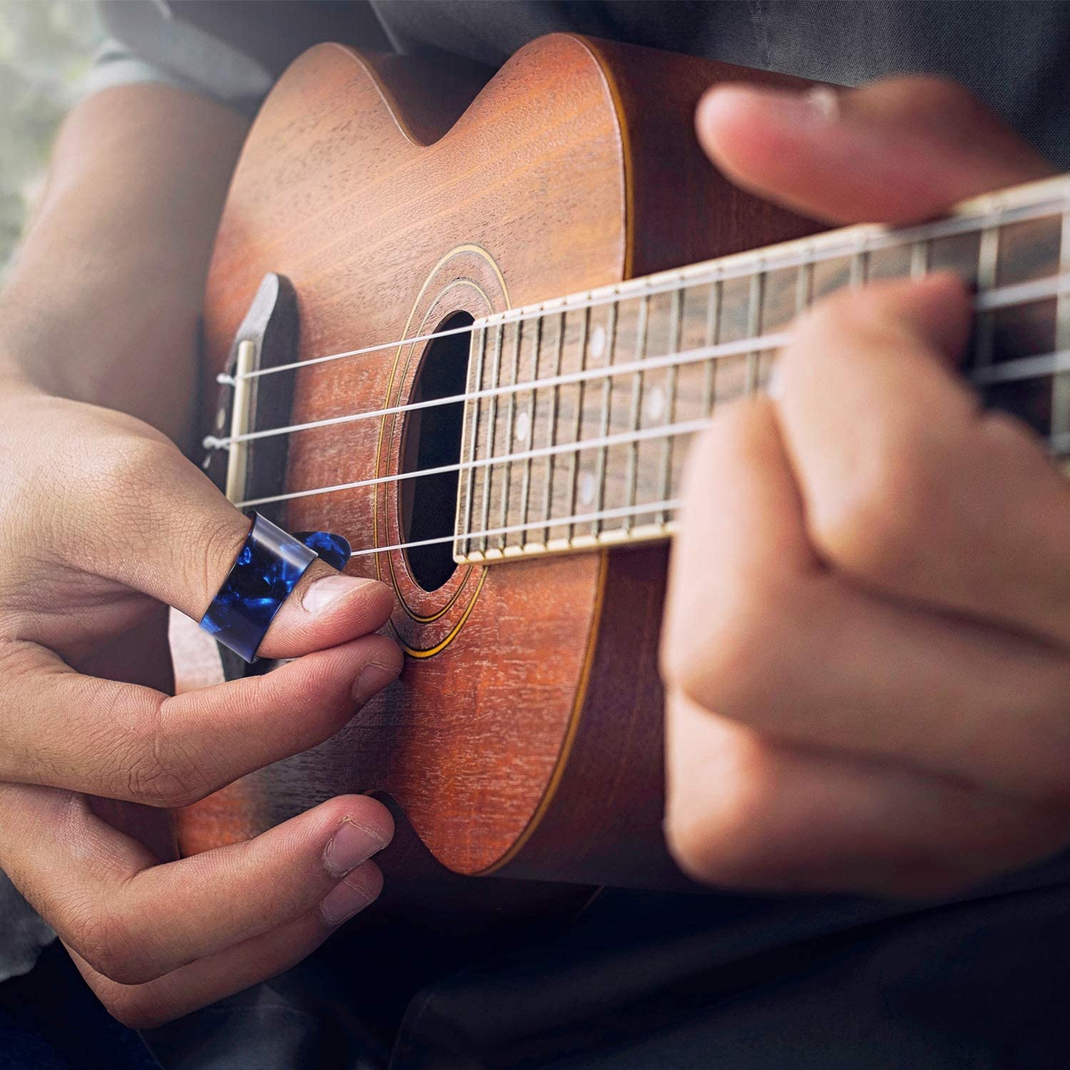• 🎵【Quality material】: Sturdy celluloid assures beautiful tone and durability,the guitar ukulele bass finger pick is not easy to be deformed, so it provides a long service life .