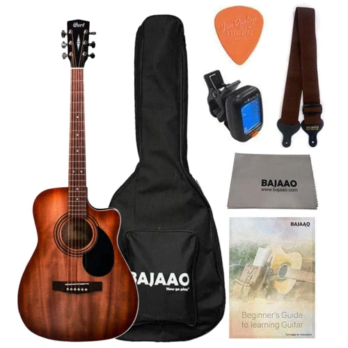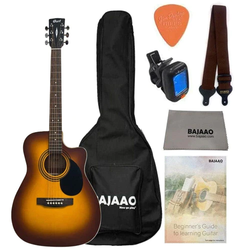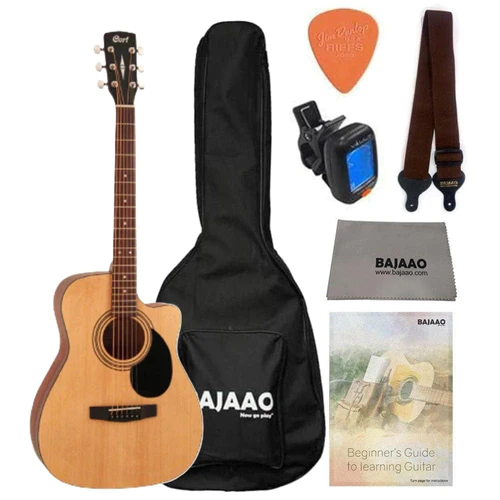Cort AF500C Standard Series Cutaway 6 String Acoustic Guitar with Gigbag, Tuner, Strap, Picks, Polishing Cloth & Ebook