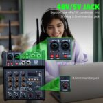• High Accurate Led Lights and Power Supply:Delicate LED peak level indicator, and ultra musical 3 band EQ on all channels; For reliable power source, this audio interface mixer comes with a +48V Phantom power supply.