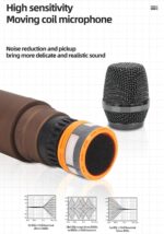 • Built in 2 wireless microphones: mixer console, professional dynamic microphone core, aluminum alloy body, durable, fall proof. Adjustable frequency: The dual UHF wireless microphone system uses PLL frequency synthesis technology to provide easy sound transmission, minimum leakage, maximum feedback suppression, and smooth and fast infrared synchronization. Remote operation of upto 200m line of sight.