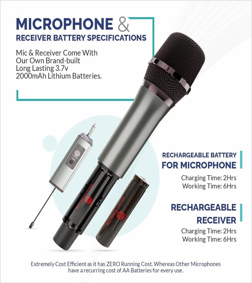 - What You Get : 2x UHF Microphone, 1x Wireless Receiver, 2x 2000mAh Lithium Batteries, USB Type C Charging Cable, User Manual, Warranty Card.