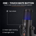 - Never Miss a Beat with Tap-to-Mute: Avoid audio mishaps effortlessly with our tap-to-mute feature, complemented by an RGB Light mic status indicator. Keep your recordings pristine – when the light’s on, the mic’s active; when it’s off, it’s muted.