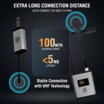 • FULL COMPATIBILITY: Wireless receiver with universal 1/4” plug works with mixers, PA speakers, karaoke machines w/ 1/4 MIC IN for voice amplifying and phones, laptops, DSLR cameras (with adaptor included) for recording.