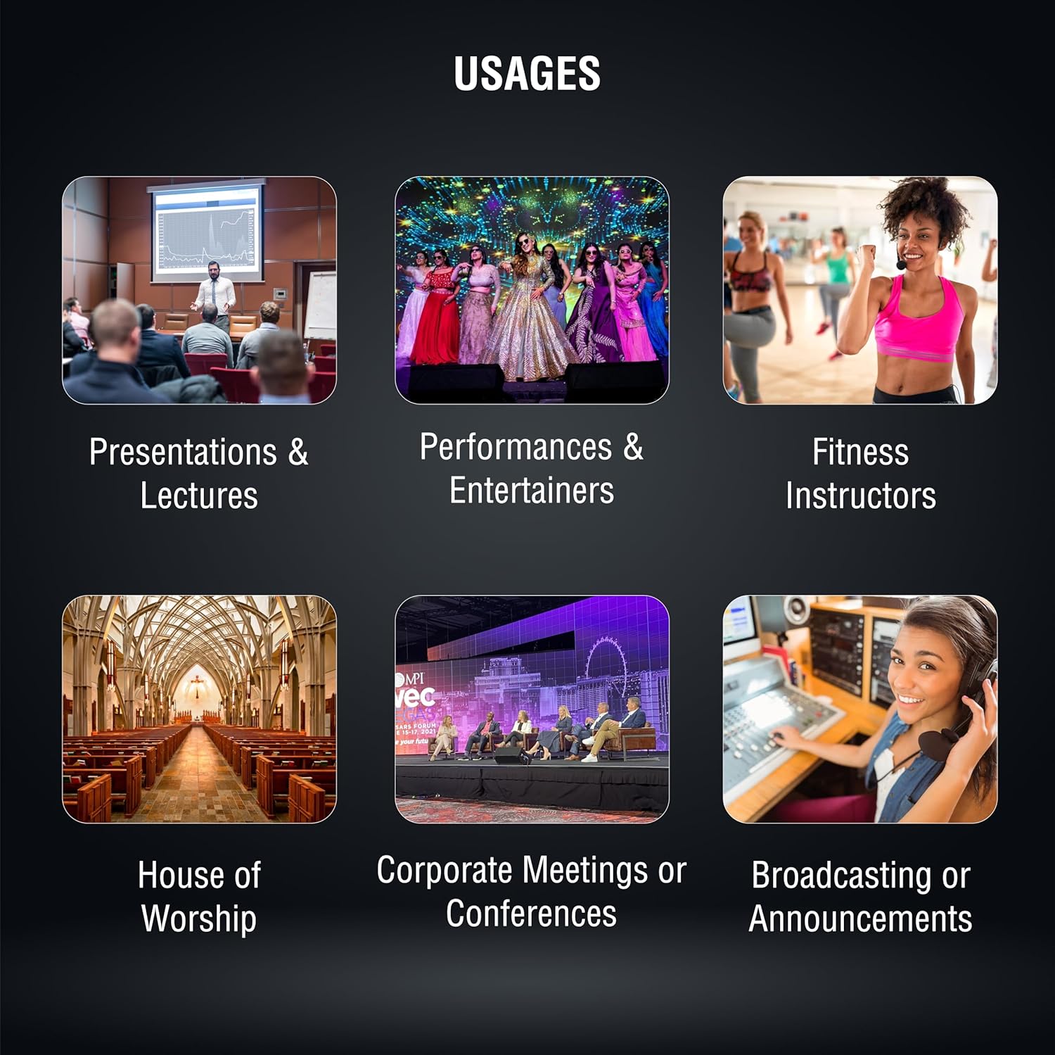 DIGIMORE UHF Wireless Microphone – Portable Cordless Microphone Set with Headset Mic, Bodypack Transmitter, Receiver – Karaoke, Conference, Stage Performances, Wedding, DJ, Party, Speech (D-341)