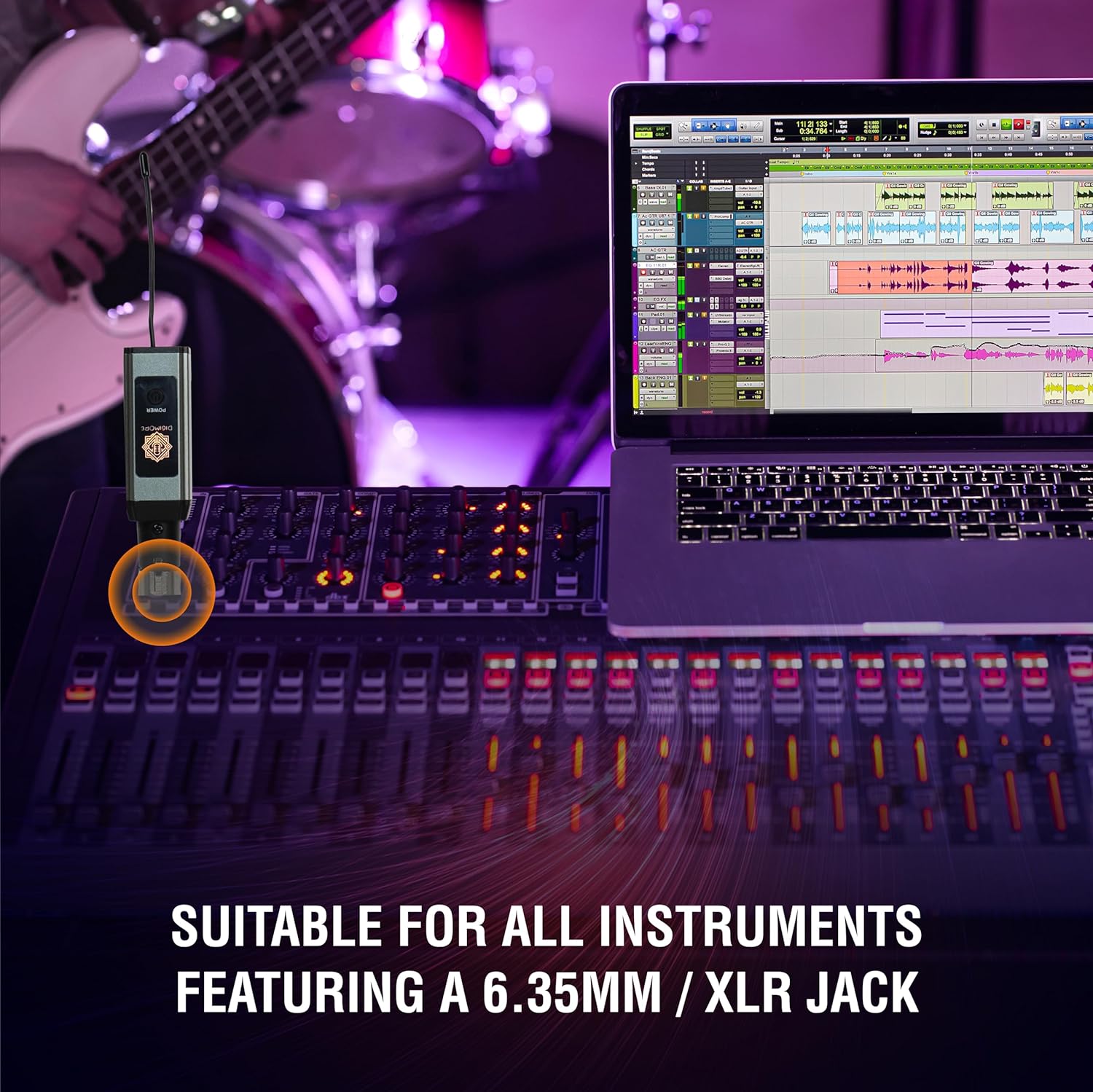 DIGIMORE UHF Wireless XLR Transmitter and Receiver & Wireless Guitar Transmitter Receiver, Rechargeable Mic Adapter for Dynamic Microphone, Audio Mixer, Electric Guitar Bass (D-720)