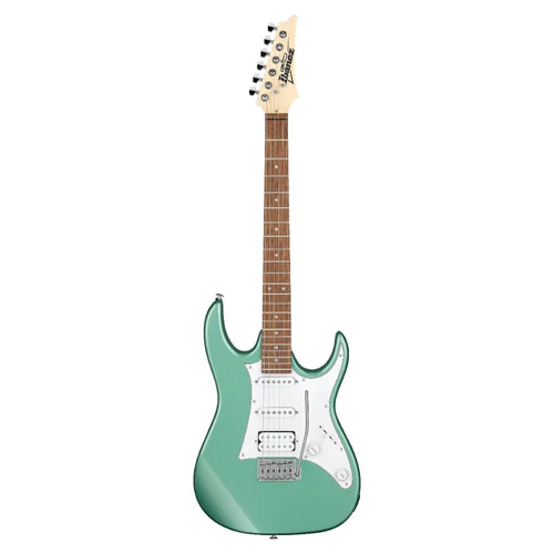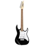 The Ibanez GRX40 Electric Guitar exhibits a sparkling white pickguard, chic chrome hardware parts, and elegant white dot inlays. This guitar is available in eye-catching finishes: Black Night, Candy Apple, Chocolate Brown, Pearl White, Tri Fade Burst, and Beam Blue.