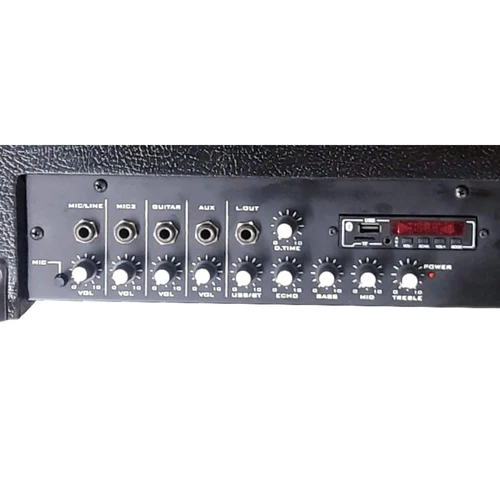 - CHANNELS: 1 X MIC , 1 X LINE/ MIC, GUITAR, AUX , MEDIA PLAYER ( BLUETOOTH , MP3 PLAYBACK)