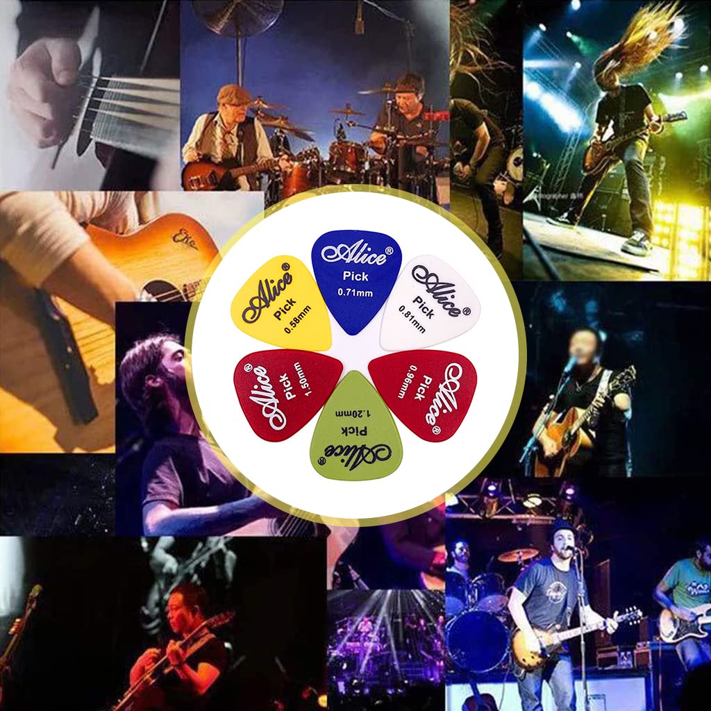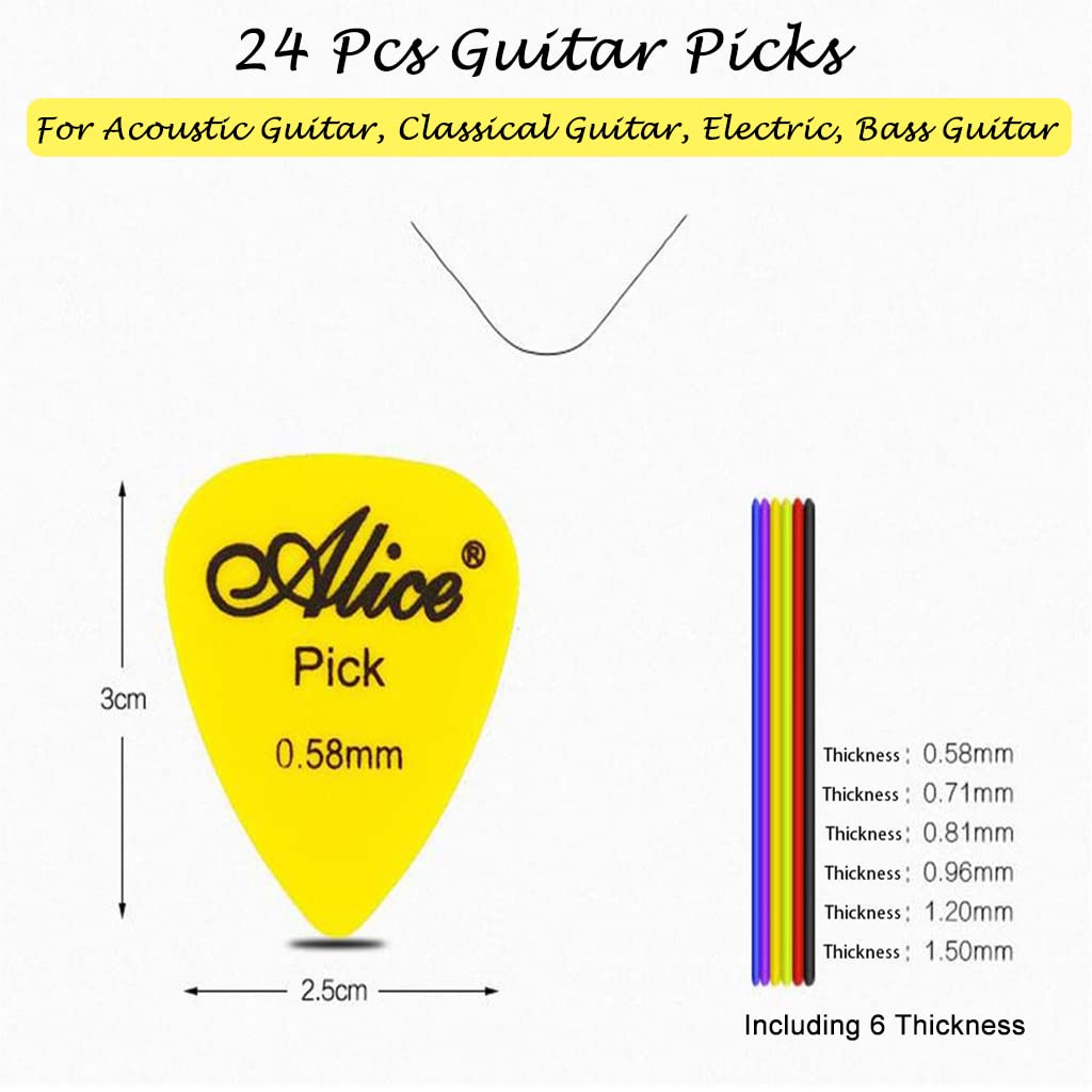 • SUITABLE FOR VARIOUS GUITAR: Suitable for Acoustic Guitar, Classical Guitar, Electric, Bass Guitar, etc. Each guitar pick has its thickness mark, convenient for your use.