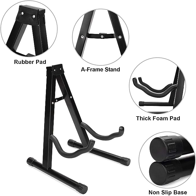 - Perfect for stage, home, studio, and rehearsal. Great Gift for the Guitarist in your life. Folds to Minimize Space. Compact, strong and durable, Holds most standard shaped guitars