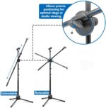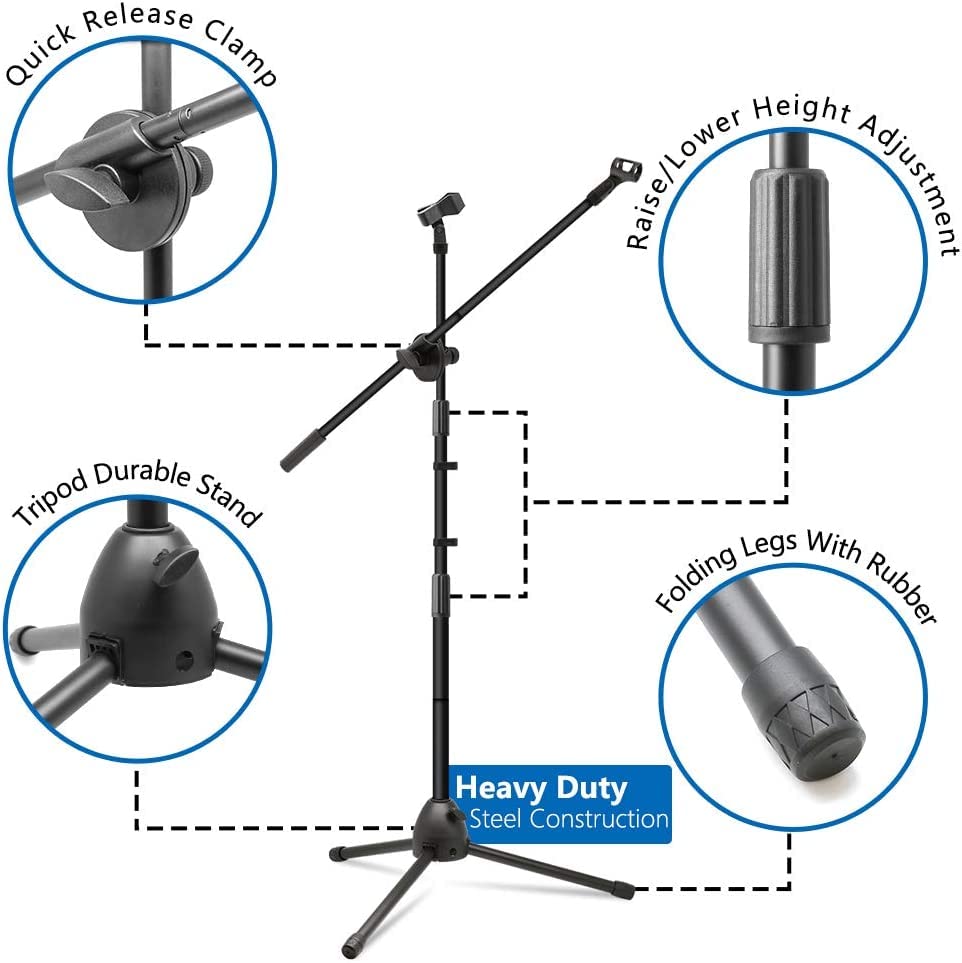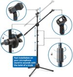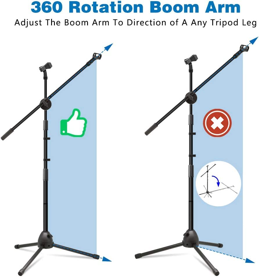 - Collapsible Stand – The boom microphone stand can much meet outside carry needs, it’s lightweight equipment that can be folded, assembled, transported, and stored in a small place. Please note that adjusting the boom arm to the direction of any tripod leg is the optimal position to keep stable.