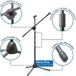 - Sturdy Tripod Base – microphone stand designed with stable tripod structure, which is made of superior steel with an ergonomic center clutch to provide excellent stability even on uneven surfaces while requiring minimal floor space. Non-slip Rubber Feet are included protecting the floor and your stand. The painted steel can sustain years of continuous wear.